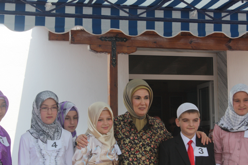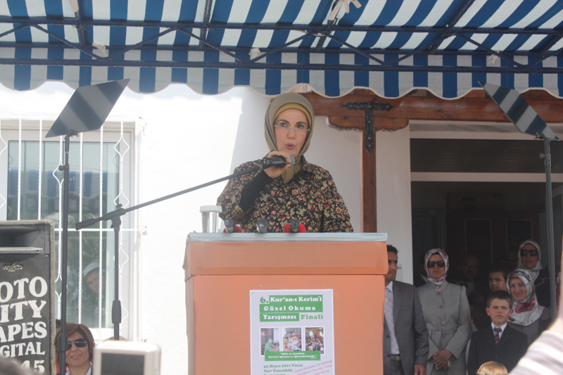 Konuşmasının sonunda Emine Erdoğan yarışmaya katılan finalistlere hediye verip hatıra fotoğrafı çektirdi ve Gümülcine S. Müftüsü İbrahim Şerif'in eşi Celile Şerif Emine Erdoğan'a hediye takdim etti.