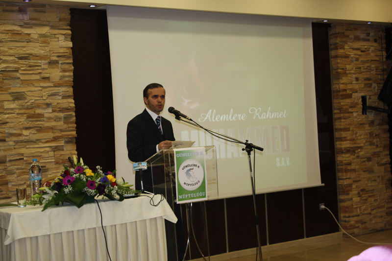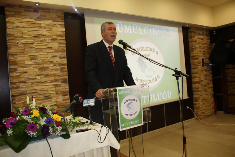 Gümülcine Seçilmiş Müftüsü Sayın Faziletli Müftümüz İbrahim Şerif'in bizleri böylesine önemli bir geceye davet etme nezaketini göstermiş olmasından dolayı teşekkürlerimi sunarım. Hakikaten Azınlığımızın Peygamber Efendimiz'in doğumunun kutlandığı bir geceye böylesine ilgi göstermesi ve görüyorum ki bayanlarımızın, hanımlarımızın sayısının erkeklerden daha fazla (Herhalde sabahki konferans da etkili oldu.) Gerçekten çok mutluluk verici, kıvanç vericidir. Tabii ki burada bu gecenin önemi anlatılacaktır. Burada Saygıdeğer İstanbul Müftümüz var. Ben kendisini geçmişten de tanıyorum. İnanıyorum ki bizlere zevkle dinleyeceğimiz çok önemli mesajlar verecektir. Şu anki halimizle konferanstan sonraki iç dünyamızın farklı olacağını şimdiden söyleyebilirim. Ama hakikaten böylesine bir kalabalığı beklemiyordum. Benim için sürpriz oldu. Hepinize şükranlarımı sunmak istiyorum.