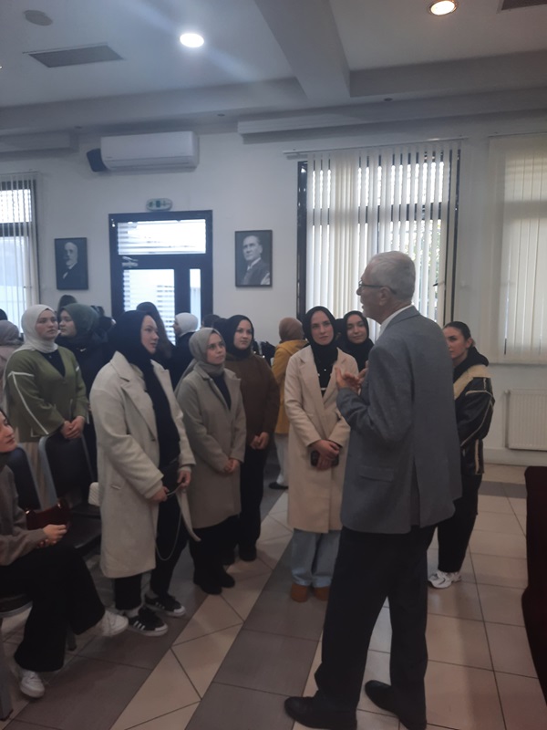 Gümülcine S. Müftüsü İbrahim Şerif’i yakından tanımak ve tecrübelerini genç nesillere aktarmak adına düzenlenen programda, müftülüğümüzün Kur’an Kursları’nda eğitim gören orta ve lise kız öğrencileri, merak ettikleri konularda sorular sorup müftümüzün hayat ve mücadele hikâyesini öğrenmeye çalıştılar.