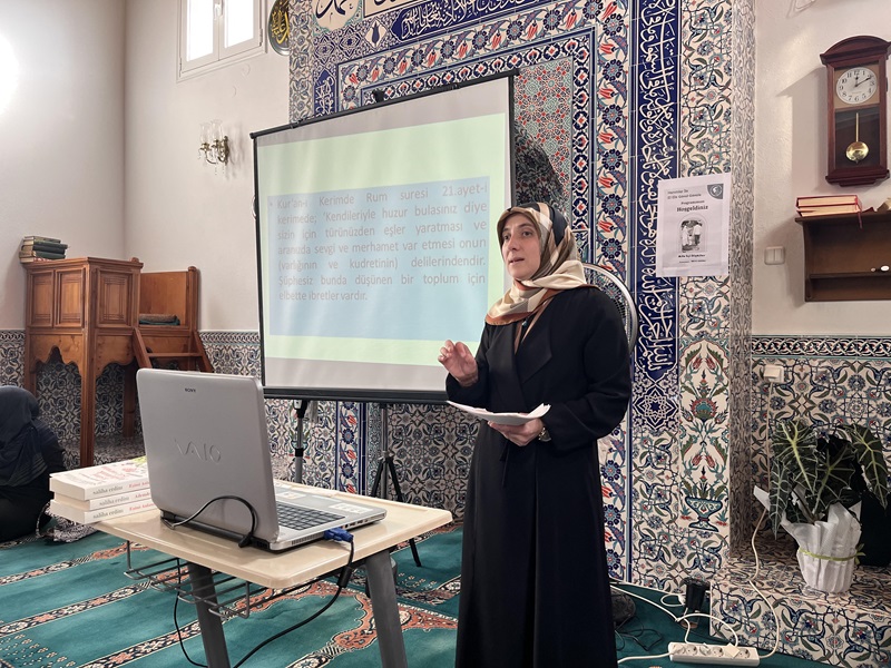 Gümülcine Bağlar Mahallesi Kemerli Camii’nde düzenlenen seminer Vaize ve Kur’an Kursu Öğreticisi Nafiye Karaali’nin sunumuyla gerçekleşti. Konuşmasında Rûm Sûresi 21. ayet-i kerimeye değindi. “(Kendileri ile huzur bulasınız diye sizin için türünüzden eşler yaratması ve aranızda bir sevgi ve merhamet var etmesi de onun (varlığının ve kudretinin) delillerindendir.)” Ailedeki ilişkilerin hedefi huzur bulmak olduğunu vurgulayan Nafiye Karaali “Ailede karı-kocanın birbirini sevmesi, birbirleriyle geçinmesi gerektiğini” söyleyerek konuşmasını tamamladı.